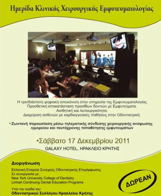 Ημερίδα Κλινικής Χειρουργικής Εμφυτευματολογίας 17 Δεκ 2011 25 Νοεμβρίου 201125 Ιουνίου 2020 Ημερίδα Κλινικής Χειρουργικής Εμφυτευματολογίας 17 Δεκ 2011 Διαβάστε περισσότερα...