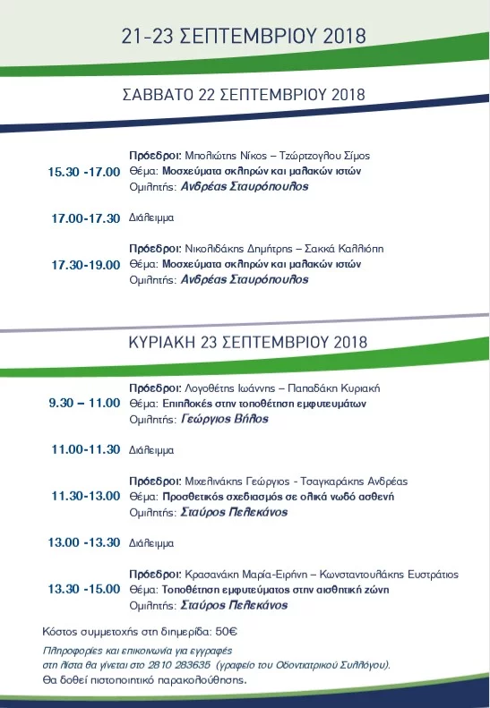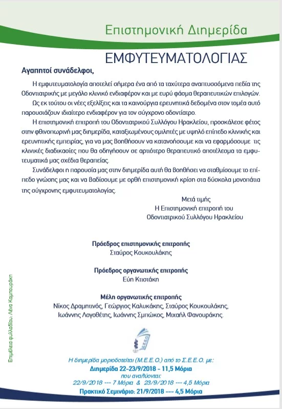 Συνέδρια - ΣεμινάριαΕπιστημ. διημερίδα Εμφυτευματολογίας 21-23 Σεπτεμβρίου 2018 5 Σεπτεμβρίου 20181 Ιουνίου 2023 Μοιραστείτε